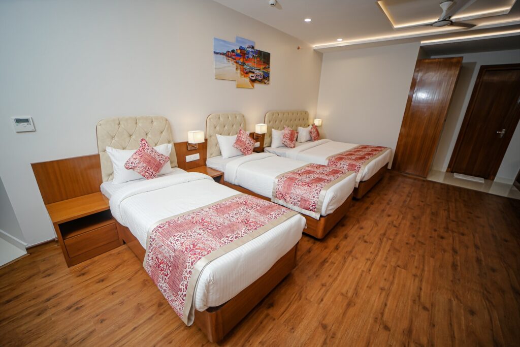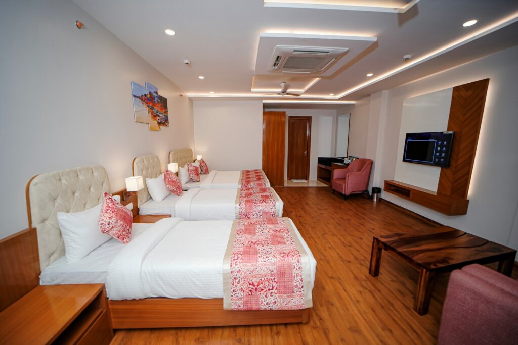 Family Suite is basically designed for accomodate 04 People at a time in one Room, with One King Size Bed and Two Single Separate Beds. This room is designed and decorated with modern style and equipped with the most luxurious facilites. Little luxuries include free Wi-Fi, deluxe bath amenities and a 4K technology flat-screen television with cable channels.